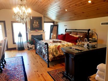 Welcome the The Loft at Mountain Creek Lodge of Oklahoma! The Loft has 2 bedrooms and 2 bathrooms and there's a private entrance from the outside via the staircase. You can add a private party, wedding, or corporate event too! Contact us for pricing and availability!